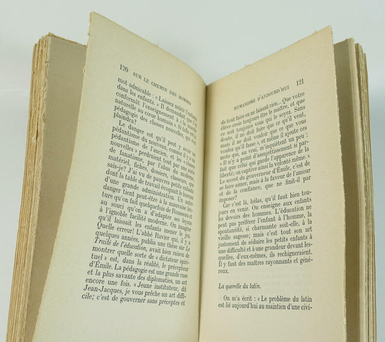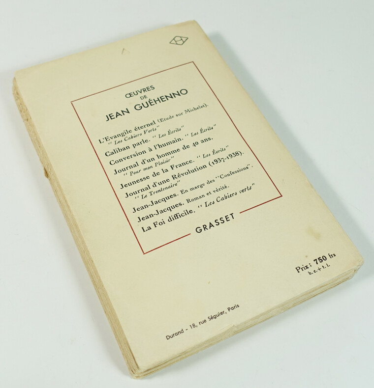 Collection "Les Cahiers Verts". Edition originale, 1/ 1350 exemplaires numérotés sur alfa mousse Navarre, à l'état de neuf. Sommaire: Sur le chemin des hommes - La querelle des humanités - Humanisme d'aujourd'hui - Honneur des hommes, saint langage - Ce qu'il faut sauver - Il faudrait un coeur tout neuf.
