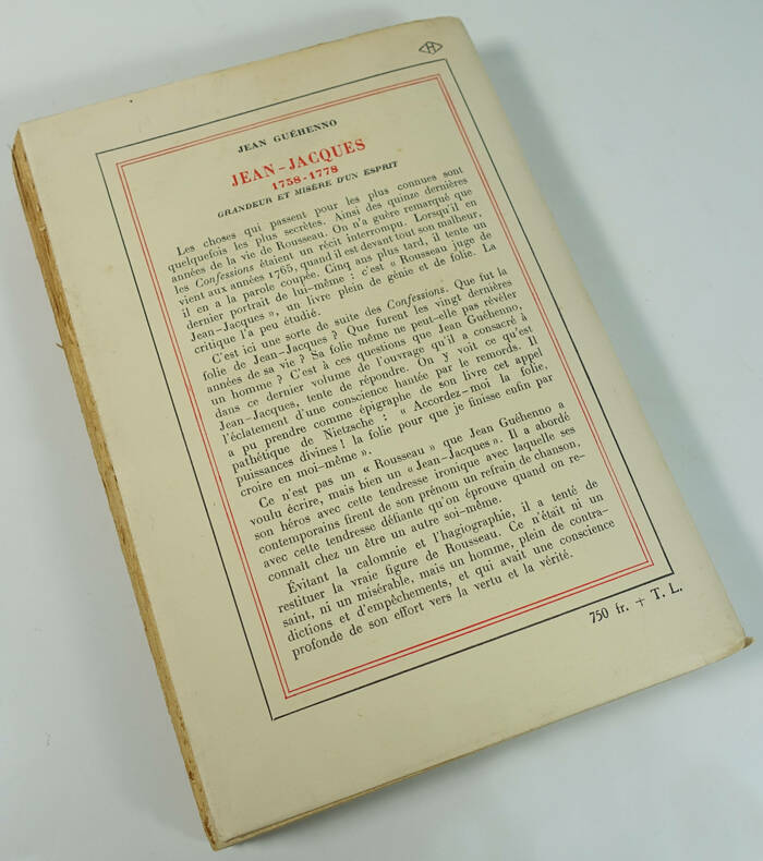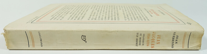 Edition originale du 3e et dernier volet du livre de Guéhenno consacré à la vie de Jean-Jacques Rousseau, 1 des 55 exemplaires sur vélin pur fil des Papeteries Lafuma-Navarre (N°11), seul grand papier.