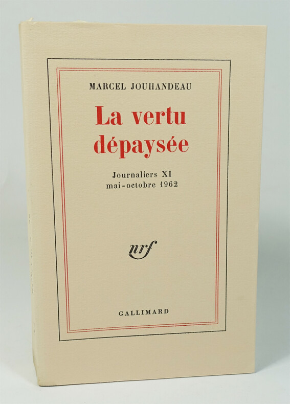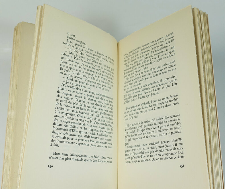Edition originale, exemplaire du service de presse. Envoi autographe de l'auteur à lécrivain Paul Morand Pour Paul / notre Jacques Chardonne / sen est allé / quel silence au / milieu de ce vacarme / On ne saurait trop / seffacer / Tout ce qui s'étale / fait honte / mon amitié / Marcel J / 7 juin 68. Cest le récit touchant de laffection de Jouhandeau pour Céline, jeune fille que sa femme et lui ont recueilli et quil décide daider à un moment où elle est enceinte. Sans doute est-ce là lessence même de lamour paternel et je ne lai pas engendrée, pas même adoptée. Mais peut-être cette absence de tout lien [...] et de toute satisfaction sensible est-elle de ma part un don aussi absolu, inconditionnel et sans retour. Le feuillet de dédicace a été remonté après avoir été détaché.