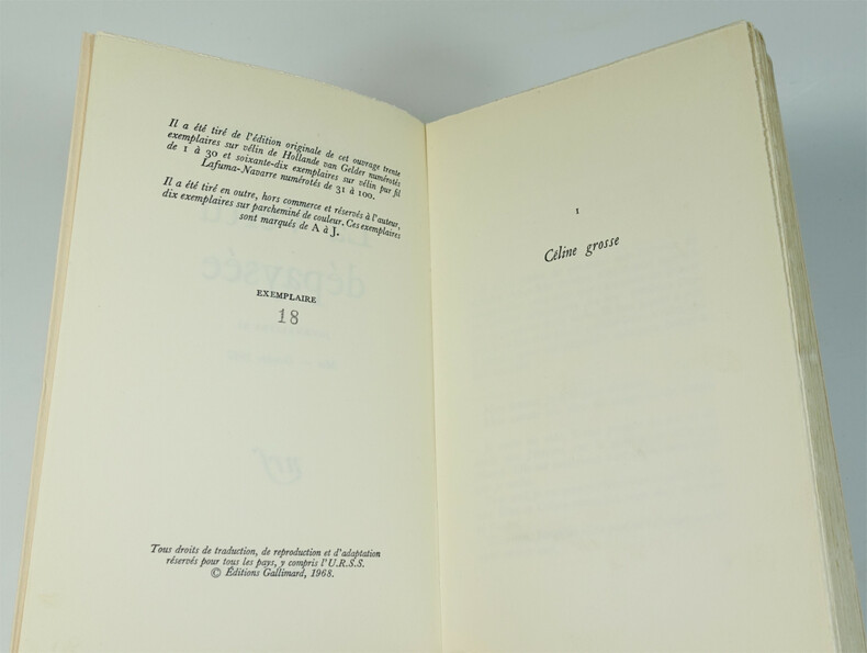 Gallimard, Nrf, 1968. In-8 broché, couverture à rabats, 269 p. Edition originale. L'un des 30 exemplaires sur vélin de Hollande, seul grand papier avec 10 hors commerce. Légère marque de brunissement au bas du dos, sinon bel exemplaire.