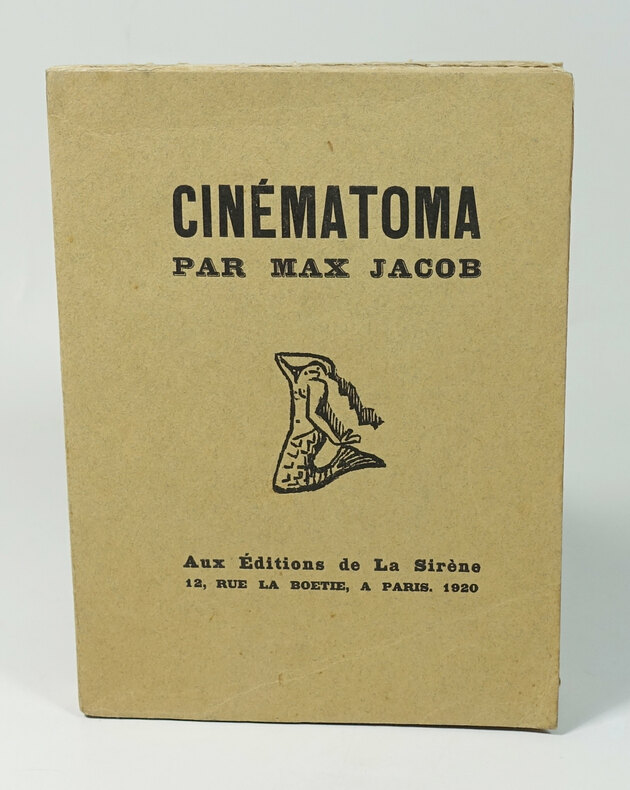 Paris Aux éditions de la Sirène 1920 302 pp. In-12 Relié. Très bel état. 1 volume. EDITION ORIGINALE. Un des 45 exemplaires de tête numérotés sur papier de Corée. Depuis ses débuts, le cinéma fascine Max Jacob. Il se rend régulièrement dans les salles obscures. IL connaît par coeur les classiques de son temps, et défend les films sans voix. Cinématoma est le deuxième et dernier ouvrage publié à La Sirène. En effet, Jacob a promis son manuscrit pour la fin de 1918, et a du mal à respecter ses délais. De plus, il ne s'entend pas les éditeurs de La Sirène fondée par Jean Cocteau, Blaise Cendrars et Jacques Lafitte. Ce livre est composé d'une quinzaine de portraits d'hommes et de femmes ordinaires, provinciaux et parisiens: "Celle sui a trouvé un mari", "L'avocat qui aura deux femmes au lieu d'une", "Le Monsieur qui se mêle de ce qui ne le regardepas", etc.