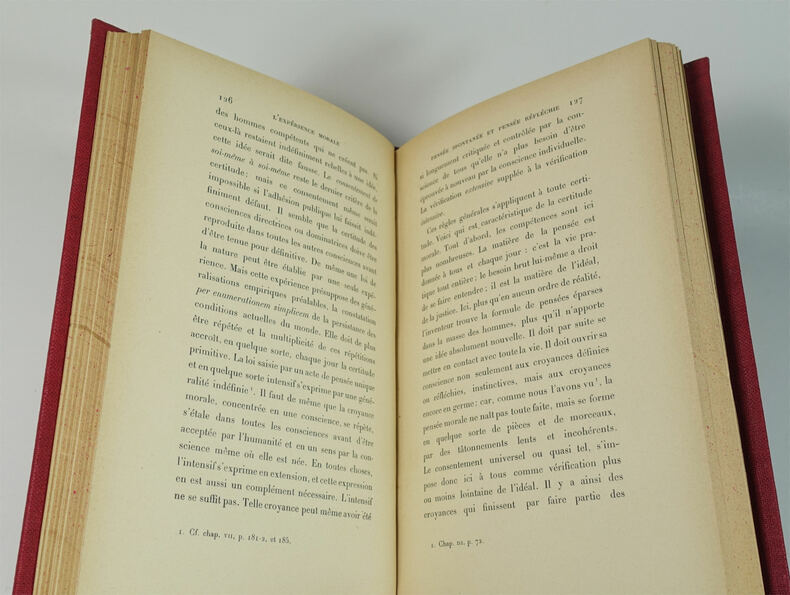 Edition originale. Reliure en demi basane chocolat, dos lisse comportant des traces de frottements orné de quintuples filets dorés, pièce de titre de basane tête de nègre, plats de papier marbré, gardes et contreplats de papier à la cuve, couverture conservée, reliure de l'époque. Envoi de Frédéric Rauh, philosophe socialiste et proche ami de Jean Jaurès, à un professeur de l'université de Bordeaux. Agréable état intérieur. - Photographies et détails sur www.Edition-Originale.com -