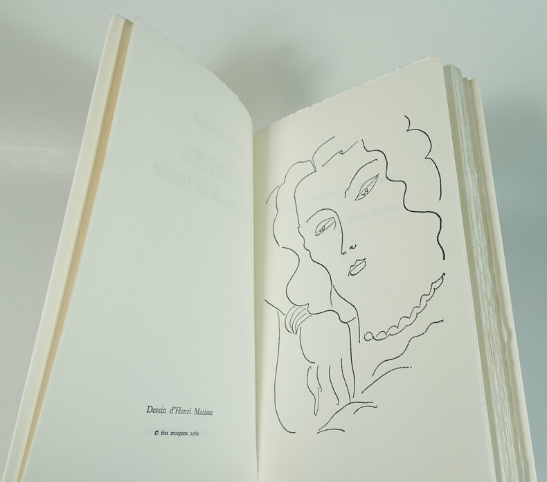 Fata morgana, 1982. In-8 broché, couverture à rabats, 70 p. Edition originale. L'un des 40 exemplaires de tête sur vélin pur fil Johannot. Dessin d'Henri Matisse au frontispice. Sont joints une carte de voeux dédicacée par P. Chabaneix ainsi que son faire-part de décès et un article du figaro relatif à sa disparition. Très bon exemplaire.