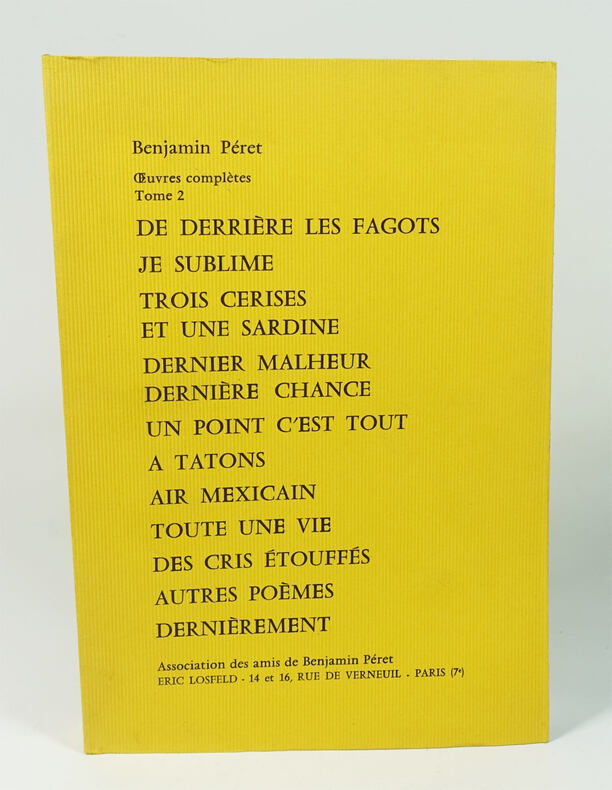 Eric Losfeld, Association des amis de Benjamin Péret, 1971. In-8 broché, 320 p. + notes et variantes. Illustrations in-fine. Bon exemplaire non coupé.