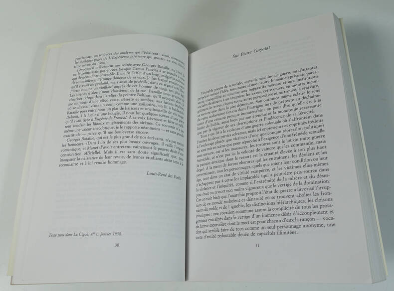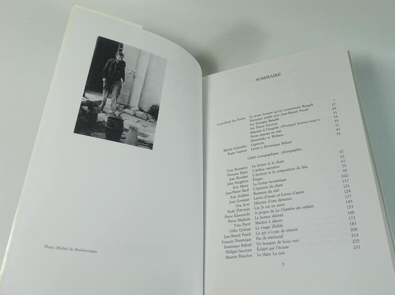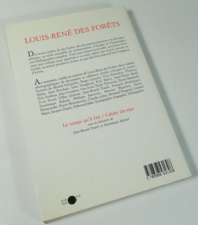 Le temps qu'il fait, 1991. In-8 broché, sous couverture illustrée, 306 p. Textes de Louis-René des Forêts, Roger Laporte, Yves Bonnefoy, Florence Delay, Jean Roudaut, Jean Grosjean, Paule Thévenin, Pierre Klossowski, Pierre Madaule, Philippe Jaccottet, Maurice Blanchot, et al. Cahiers iconographiques. Très bon état.