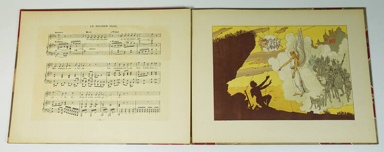 Enoch frères & Costallat éditeurs, Flammarion, s.d. (circa 1890). Livre-partition cartonné d'éditeur, format à l'italienne, couverture illustrée, 36 p. Edition originale. Lithographies en couleurs de Louis Bombled. Feuillets comme toujours désolidarisés, pales rousseurs au second plat, coiffes frottées.