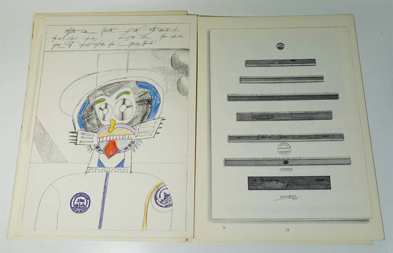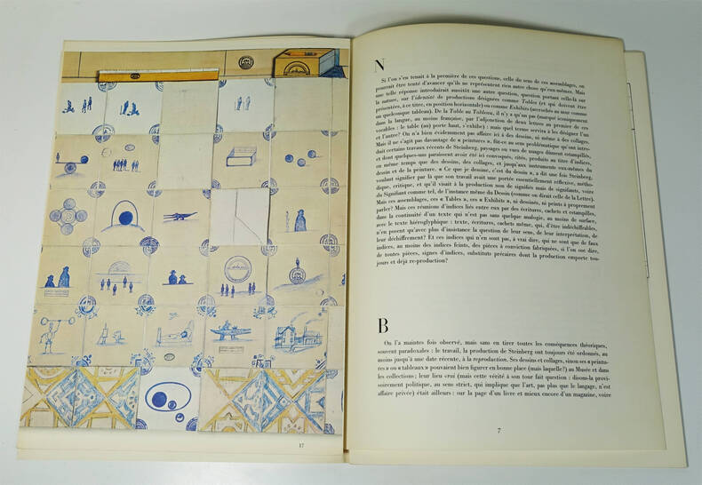 Maeght, 1973. In-folio en feuilles, 380 X 280, 32 p. Tirage originale de ce numéro édité en septembre 1973 pour l’exposition STEINBERG à la Galerie Maeght. Texte de Hubert Damish « Tables d’évidences ». 3 lithographies originales dont 2 en double page et 8 reproductions en noir. Bon exemplaire.