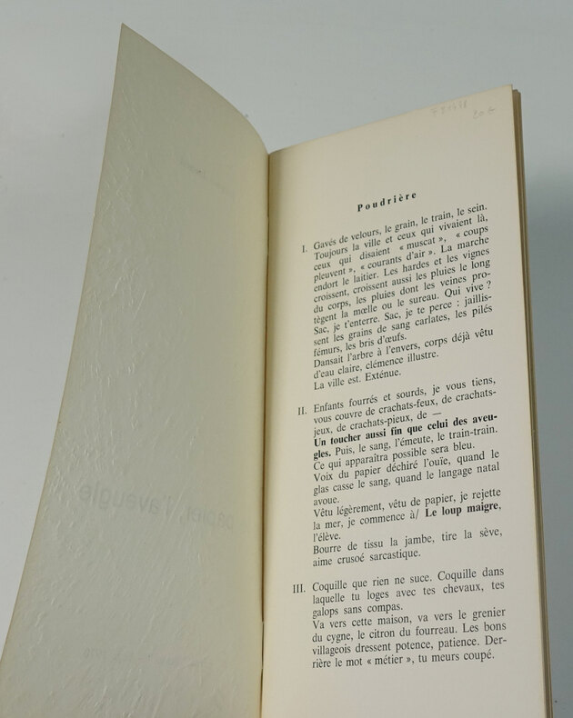 Revue "L'essai", Liège, 1970. Plaquette agrafée, 200 x 95 mm, 12 p. Edition originale de ces 10 textes publiés pour le numéro spécial de la revue éponyme, au tirage non précisé. Discrètes taches sur la couverture, intérieur bon.