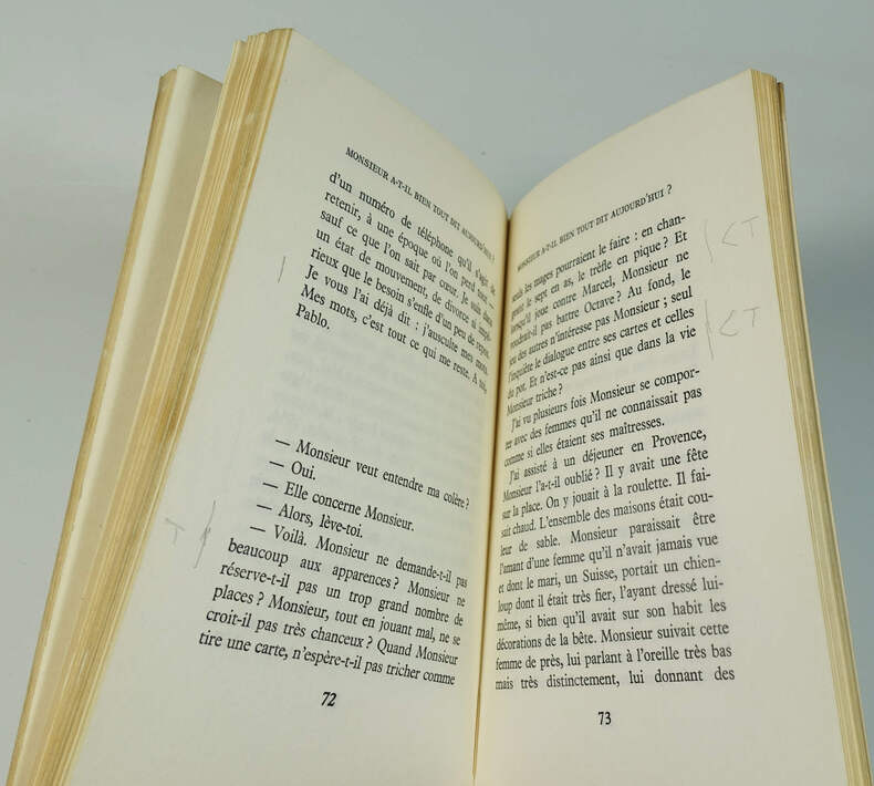 Denoël, 1967. In-12 broché, 109 p. Edition originale en service de presse. Envoi autographe signé (Pierre) à Max(-Pol Fouchet). Nombreuses annotations de Max-Pol Fouchet en marge du texte. Couverture passée.
