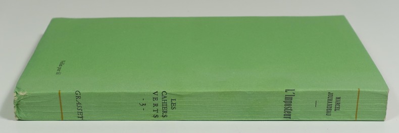 Grasset, "Les Cahiers Verts", Paris, 1950;, 1950. in-8, broché. 204 pages. Edition originale. Un des exemplaires sur alfa. NO 1578:2800 Avec un portrait de Marcel Jouhandeau par Cocteau en frontispice