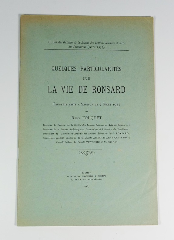Extrait du Bulletin de la Société des Lettres, Sciences et Arts du Saumurois, avril 1937. Plaquette agrafée, 245 x 158 mm, 20 p. Très bon état.