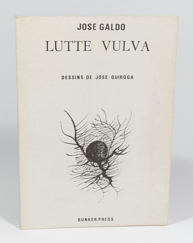 Bunker press, Paris, 1977. In-12 broché, couverture illustrée, pagination absente. Edition originale tirée à 500 exemplaires. Dessins à pleine page de Jose Quiroga. Cachet ex-libris. Couverture passée, intérieur bon.