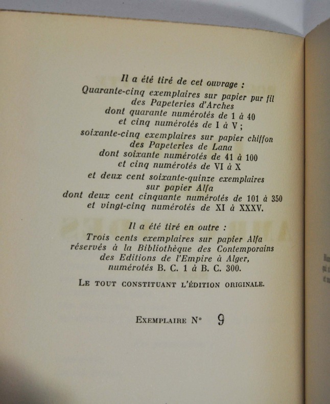 Flammarion, 1953. In-8 broché de 378 pages. Edition originale. Un des 45 exemplaires de tête numérotés sur pur fil d'Arches.