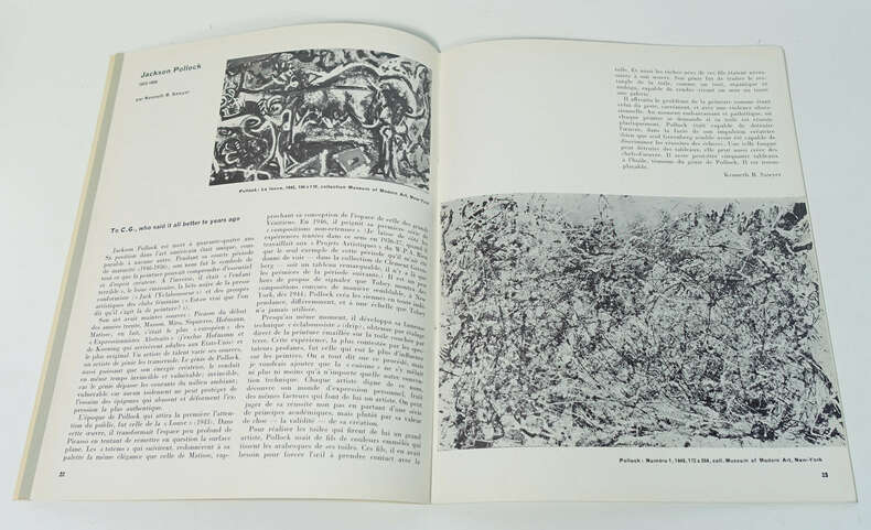 Cimaise, Paris, novembre-décembre 1956. Fascicule agrafé, 200 x 248 mm, 50 p. Edition originale. Couverture de Yunkers. Textes en anglais et français de Dore Ashton, K. B. Sawyer sur Jackson Pollock, R. Goldwater, Julien Alvard, Herta Wesher, etc. Illustrations en noir et blanc. Très bon état.
