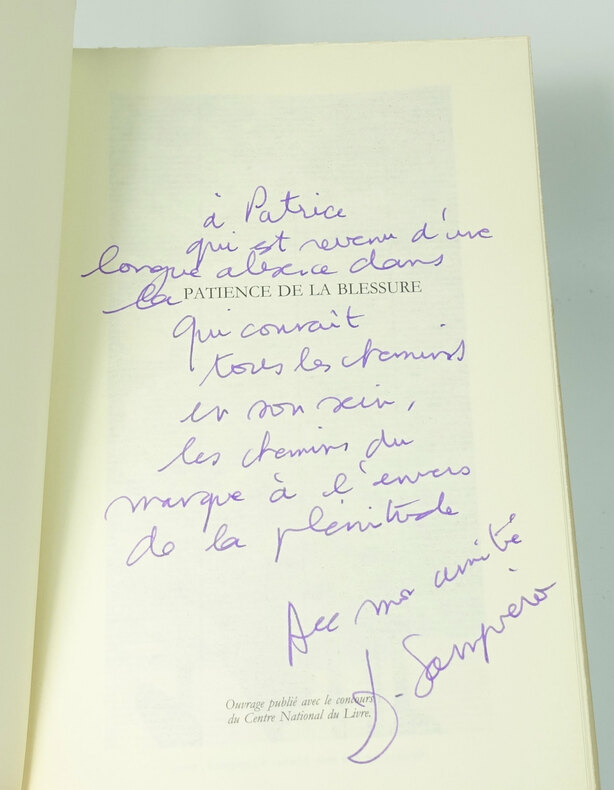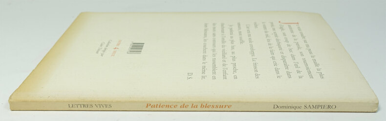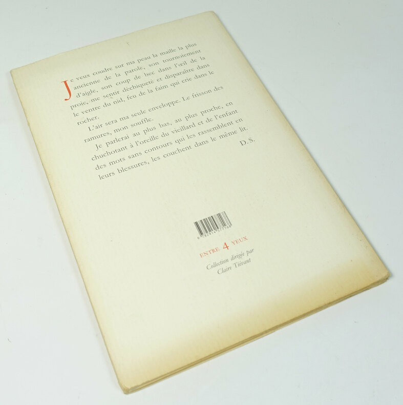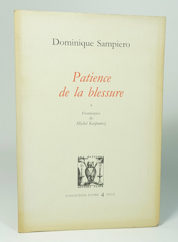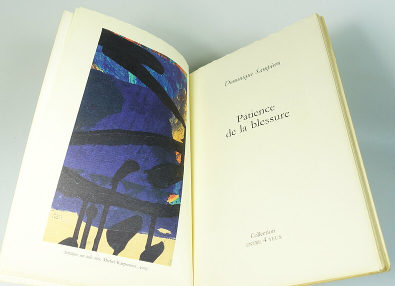 Editions Lettres vives, coll. "Entre 4 yeux", 2003. In-8 broché, 77 p. Edition originale sur papier courant enrichie d'un bel envoi autographe signé de l'auteur. Frontispice de Michel Karpowicz. Couverture partiellement brunie.
