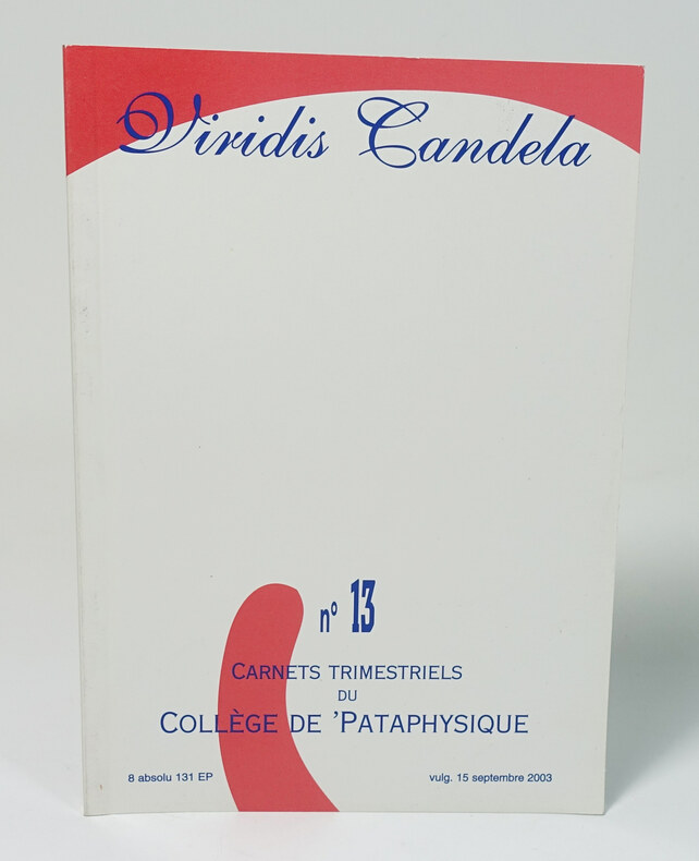 Collège de ’Pataphysique,8 absolu 131 EP (vulg. 15 septembre 2003). In-8 broché, 80 p. Edition originale. Très bon état.