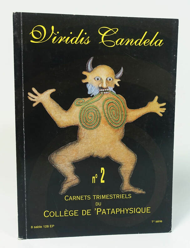 Collège de ’Pataphysique, Viridis Candela, 8 sable 128 EP, (vulg. 8 décembre 2000). In-8 broché, 80 p. Edition originale. Petits frottements aux angles, intérieur frais.