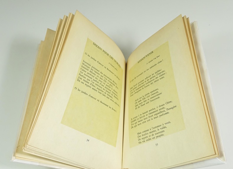 Paris, Au Moulin de Pen-Mur, 1948, En feuilles sous chemise et emboitage., Oeuvres complètes. 12 vols. Poésies: 1. Contes d'Espagne et d'Italie, Poésies diverses, Poésies complémentaires; 2. Un spectacle dans un fauteuil, Namouna, Poésies posthumes, 3. Poésies nouvelles; Prose: 1. Contes & nouvelles; 2. Contes & nouvelles; 3. Romans & nouvelles; 4. La confession d'un enfant du siècle; 5. Littérature & critique; Théâtre: 1. Lorenzaccio, André del Sarto, Les caprices de Marianne; 2. La nuit vénitienne, On ne Badine pas avec l'amour, Barberine, Le chandelier, Il ne faut jurer de rien; 3. Fantasio, Caprice, Il faut qu'une porte soit ouverte ou fermée, Louison, On ne saurait penser a tout, Carmosine; 4. Bettine, Théatre complémentaire, Théatre posthume, Fragments. Bel exemplaire, frais. Justification : Edition tirée à 1200 ex. sur les presses de Viglino. Les illustrations ont été rehaussées au pochoir par Renson fils. La décoration typographique est de Roger-Schardner. Un des 400 ex. sur chiffon O.C.F. des Papeteries de France. (n°970)