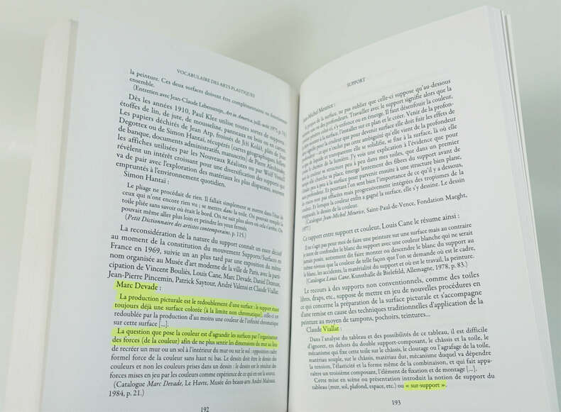 "Voici un répertoire alphabétique des termes clés se rapportant à la théorie et à la pratique des arts plastiques de ce siècle. Des commentaires clairs et rigoureux cernent les notions évoquées et introduisent un ensemble de citations d'artistes et de critiques choisies pour leur pertinence et leur aptitude à refléter des angles d'approche aussi diversifiés que possible. Des renvois, plusieurs index, ainsi qu'un large éventail d'illustrations, facilitent le parcours des nouvelles conceptions esthétiques avancées par les créateurs. Pratique et richement informé, ce Vocabulaire constitue ainsi à la fois un instrument de travail commode et une invitation à explorer, dans leurs multiples facettes, les tendances des arts plastiques de notre époque"