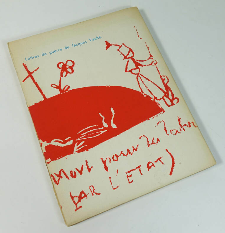 K editeur 1949. In-8 broché non paginé au format 16,5 x 21,5. Magnifiques couvertures, rempliées, illustrées d'après la maquette de Pierre Faucheux. Dos carré mais insolé avec petites traces blanches et frottis en haut et en bas. Mors et bords des plats légèrement insolés. Intérieur frais. Cet ouvrage contient les lettres de Guerre de Jacques Vaché, une nouvelle, quatre préfaces d'André Breton, L'Opium et deux lettres en fac-similé autographe, dont une tirée sur fort papier bleu. Un des 150 exemplaires numérotés sur vélin crèvecoeur ( n° 55 ), après 10 sur vergé d'arches. Superbe état général. Edition en partie originale, après celle parue en 1919 dans la collection de Littérature, Au Sans Pareil. Rare en tirage numéroté.