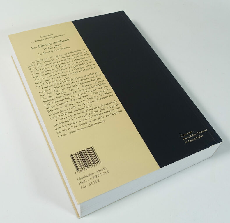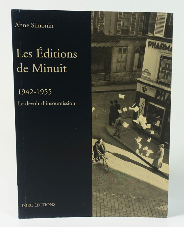 Paris, IMEC Editions, 1994, 17 x 23,5, 600-VIII pages cousues sous couverture souple illustrée. Ouvrage enrichi d'un cahier (central) de VIII pages d'illustrations noir & blanc. In fine (72 pages), reproduction du catalogue des Editions de Minuit pour l'année 1956 (photographies noir & blanc - in texte).