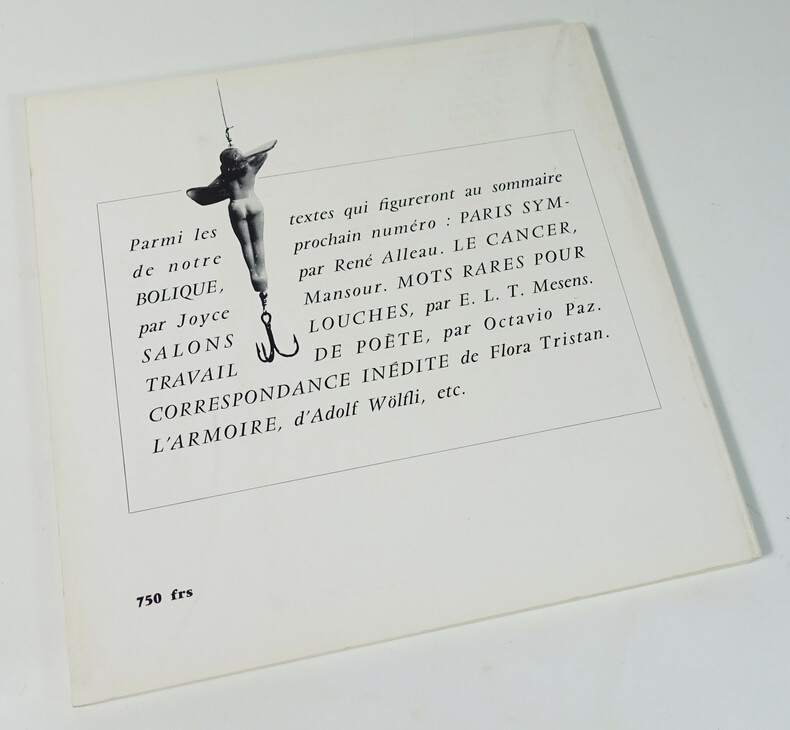 Jean-Jacques Pauvert, Dir. André Breton, Rédacteur en chef; Jean Schuster, 1957. In-8 broché, format carré, couverture illustrée d'après Pierre Molinier, 169 p. Complet de l'encart "Le royaume de la terre", scénario d'Abel Gance et Nelly Kaplan. Illustrations en noir et couleurs. Très bon exemplaire.