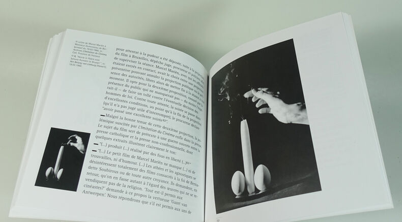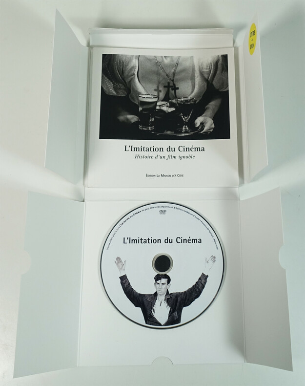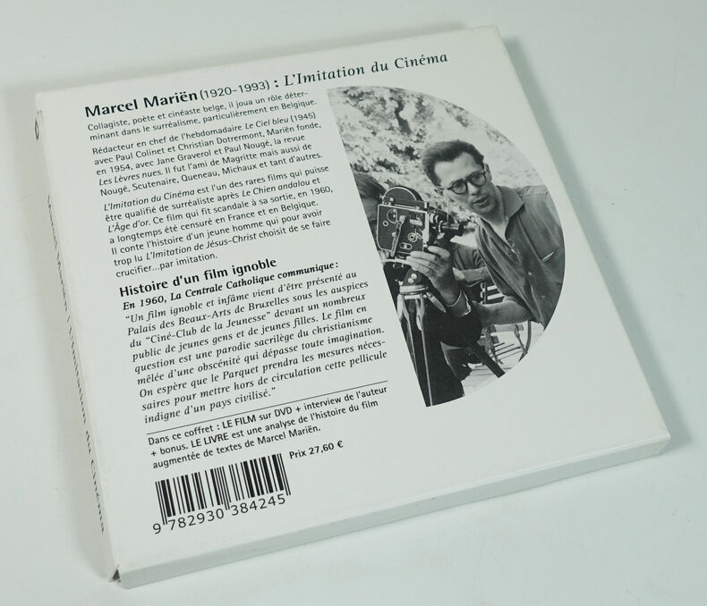 La Maison d'à côté, s.d. (2008). In-12 carré non paginé sous coffret accompagné du Dvd de "L'imitation du cinéma" et d'un dépliant comprenant 4 reproductions en couleurs de collages de Mariën. Très bon état.