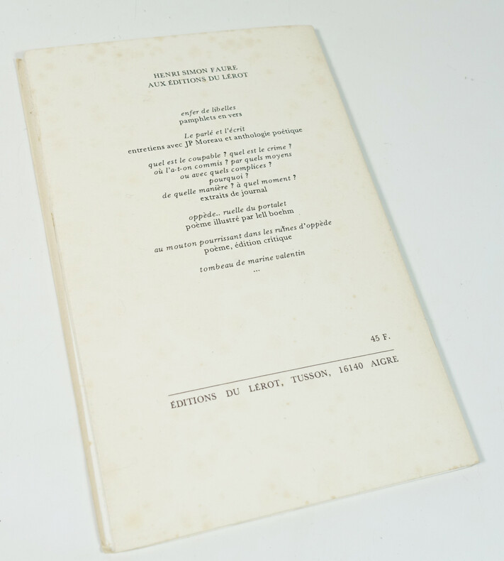 Du Lérot, Tusson, 1985. In-8 broché, 62 p. Edition critique illustrée de deux photographies. Couverture piquée, sinon bon état.