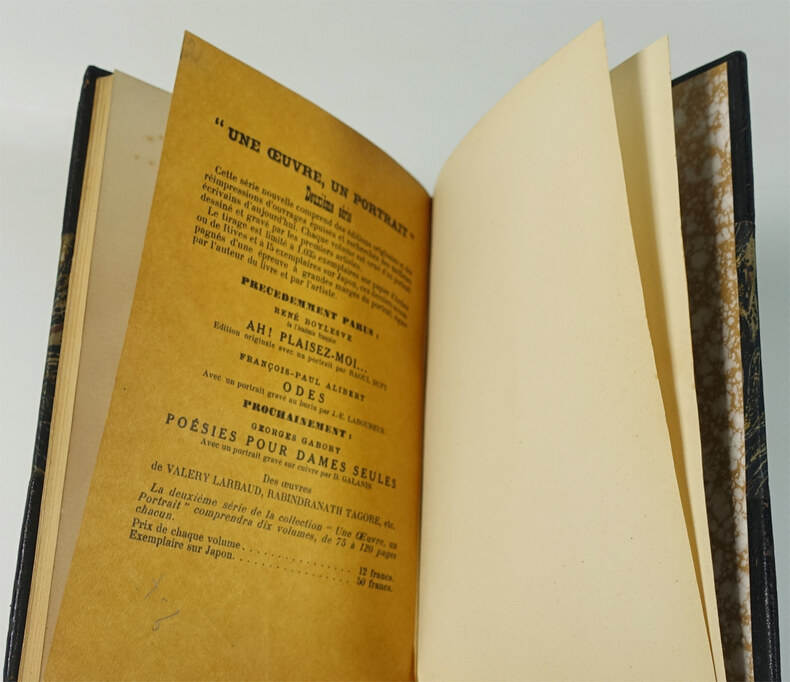 Editions Nrf, coll. "Une oeuvre, un portrait", deuxième série, 1922. Reliure in-12 demi-chagrin à coins, dos lisse, nom et titre dorés, plats conservés, plats ornés de filets dorés, 95 p. Edition originale. Exemplaire numéroté sur vergé de Rives. Portrait frontispice de l'auteur imprimé sur Chine. Minimes défauts d'usage, frottements au dos et au mors, quelques rares rousseurs, sinon bon exemplaire.