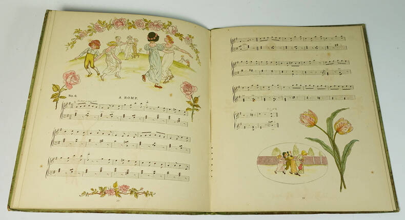 George Routledge and sons, London, 1881. Cartonnage in-4 d'éditeur, dos toilé, 30 p. Edition originale. Partitions d'après la musique de Myles B. Foster illustrées en couleurs par Kate Greenaway. Reliure légèrement passée, petites marques d'usage sur les plats, pales rousseurs.