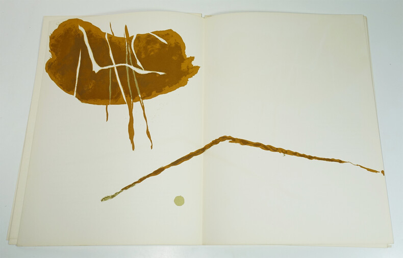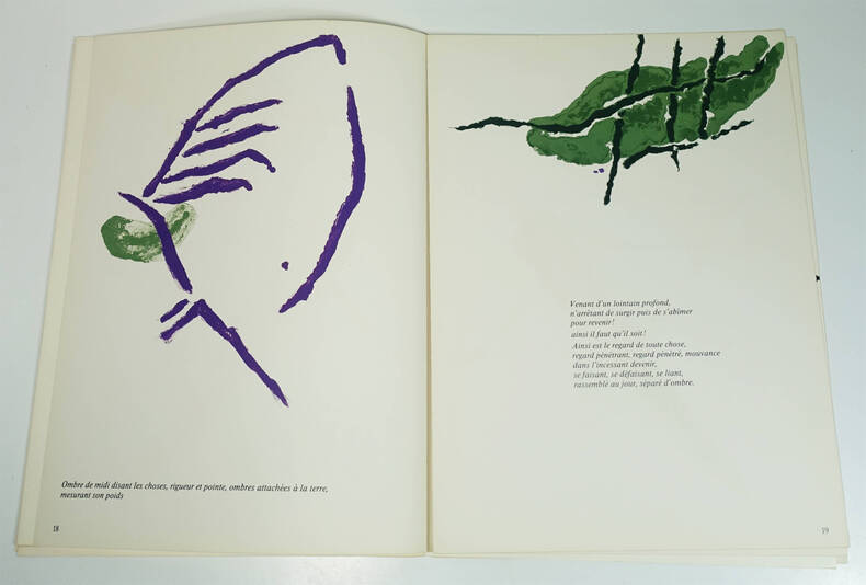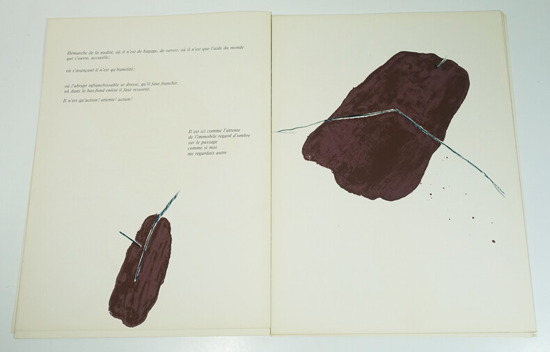 Maeght éditeur, 1972. Un volume en feuilles, 380 x 280 mm, 36 p. Edition originale. 8 lithographies originales en couleurs dont 2 en double page (couverture incluse), 3 lithographies originales en noir et 12 reproductions. Minimes taches d'humidité au dos et en bordure des plats, intérieur bon.