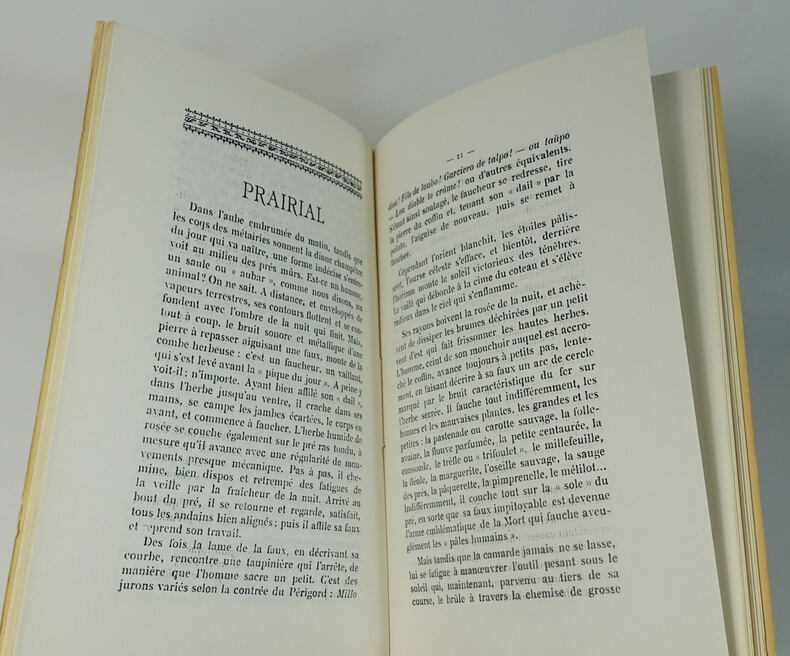 Un des 1000 exemplaires numérotés, 1 vol. in-12 reliure demi-basane marron, dos à 2 séries de nerfs, couverture conservée, super libris du Château de Lauzun, reliure signée de Garrigou, Les Editions du Périgord Noir, Montignac (Dordogne), 1946, 184 pp.