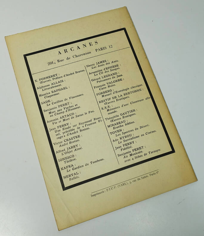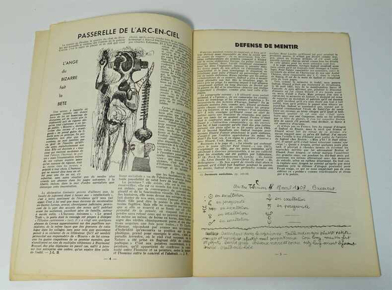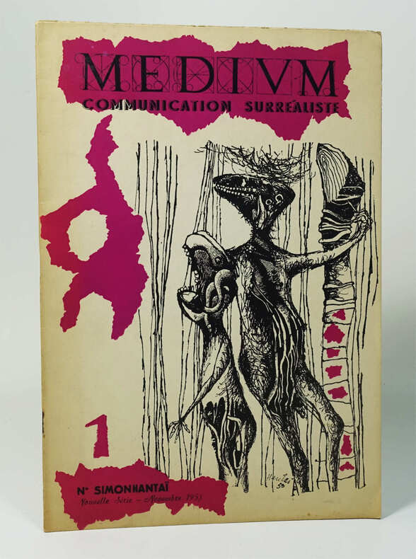Paris, Médium, nov. 1953, dir. Jean Schuster. Un volume agrafé, 280 x 190 mm, 16 p. Edition originale de ce numéro dont la couverture est illustrée par Simon Hantaï. Nombreuses illustrations en noir et blanc, principalement de Hantaï. Pli angulaire au bas du second plat, une agrafe oxydée.