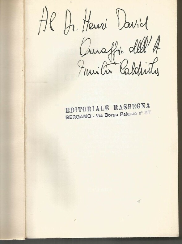 Dédicacé par l'auteur à un certain Dr Henri Davd - livre avec jaquette--stenografato de uzzi bar ziha e da Nabussan ibn Sanbusna -Total de 469 pages--Edition de 1960 - Editeur : Guanda -En bon état, sauf la jaquette -- Envoi colissimo ou par mondial relay, moins de 1 kilo