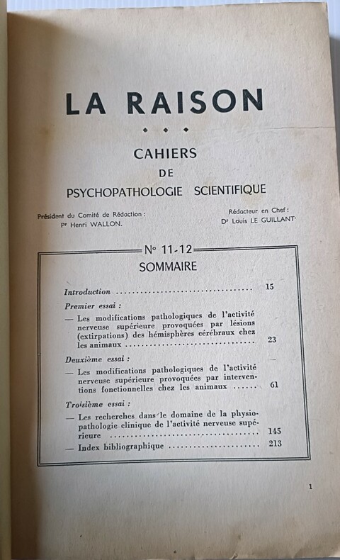 ---- PREMIERE EDITION FRANCAISE ---- BEL EXEMPLAIRE ---- Les recherches dans le domaine de la physiopathologie clinique de l'activité nerveuse supérieure : Les étapes principales du contact de I.P. Pavlov avec la clinique des maladies neuro-psychiques, les principales bases de travail de I.P. Pavlov dans le domaine de la physiopathologie clinique de l'activité nerveuse supérieure, essai général sur les recherches de I.P. Pavlov et de ses collaborateurs dans la clinique des névroses, L'oeuvre de I.P. Pavlov et de ses collaborateurs dans le domaine de la thérapeutique pathogénique des maladies neuropsychiques - etc**4040/H6