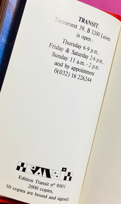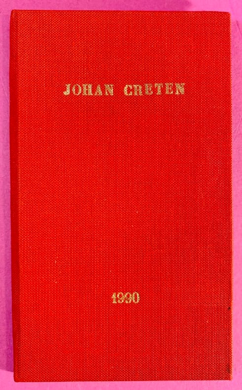 1990 Couverture rigide Leuven (Louvain), Edition Transit, 1990. Un volume in-32 (13 x 8 cm), reliure entoilée de l'éditeur, nom de l'artiste et date en caractères dorés au premier plat. 32 pages, illustrées de reproductions photographiques en couleurs. Catalogue édité à l'occasion de l'exposition de Johan Creten à la galerie Transit, du 12 janvier au 18 février 1990. Un des 50 exemplaires reliés, signé et numéroté à la mine de plomb par l'artiste belge. Johan Creten est aujourd'hui considéré comme l'un des précurseurs de l'introduction de la céramique dans l'art contemporain aux côtés de Thomas Schütte et Lucio Fontana. Sa première formation, celle de peintre, se retrouve souvent dans ses oeuvres par une utilisation picturale des émaux. Bon exemplaire de cette édition originale, en très bon état.