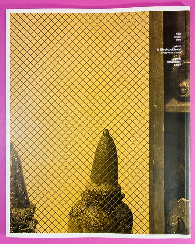 1994 Couverture rigide Villa Arson, Nice, 1994. Un volume petit in-4 (26,5 x 21 cm), couverture illustrée à rabats. 31 (1) pages, illustrées de reproductions en couleurs d'oeuvres de l'artiste. Catalogue publié à l'occasion de l'exposition consacrée à l'artiste à la Villa Arson à Nice, du 16 octobre au 12 décembre 1993. Johan Creten est un sculpteur belge, établi à Paris. Formé à la peinture, il est notamment connu pour son travail sur la céramique, le bronze et les émaux. Bon exemplaire de cette édition originale.