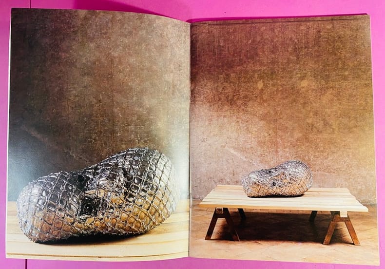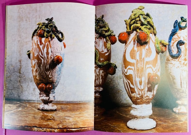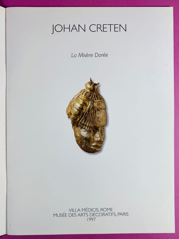 1997 Couverture rigide Paris, Rome, Musée des arts décoratifs, Villa Médicis, 1997. Une plaquette in-4 (27 x 20 cm), couverture illustrée. 20 pages non chiffrées, illustrées de reproductions en couleurs d'oeuvres de l’artiste. Catalogue publié à l’occasion de l’exposition consacrée à l’artiste aux Musée des Arts Décoratifs de Paris du 18 novembre au 28 décembre 1997. Johan Creten est un sculpteur belge contemporain reconnu pour son travail sur la céramique, la résine, le bronze, les émaux. Bon exemplaire de cette édition originale.