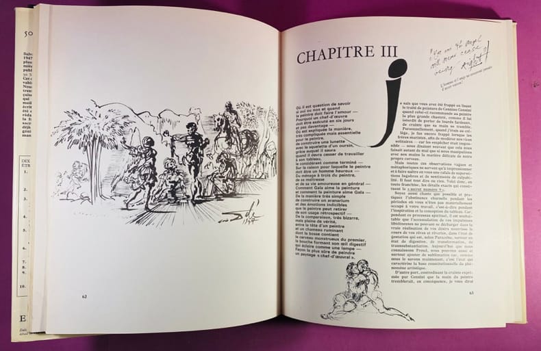 Lausanne Edita - La Bibliothèque des Arts 1985 in 4 (30,5x24) 1 volume reliure toilée noire de l'éditeur, plat supérieur titré, tranches dorées, étui toilé rouge, XVI et 165 pages [2]. avec de nombreuses illustrations de Salvador Dali en noir et blanc et en couleurs, dont planches hors texte contrecollées. Salvador Dali I Domènech, dit Dali, Figueras 1904-1989, peintre, sculpteur, graveur, scénariste et écrivain catalan de nationalité espagnole. Celui-ci un des exemplaires du tirage limité à 1900 exemplaires numérotés. Très bel exemplaire ( Photographies sur demande / We can send pictures of this book on simple request )