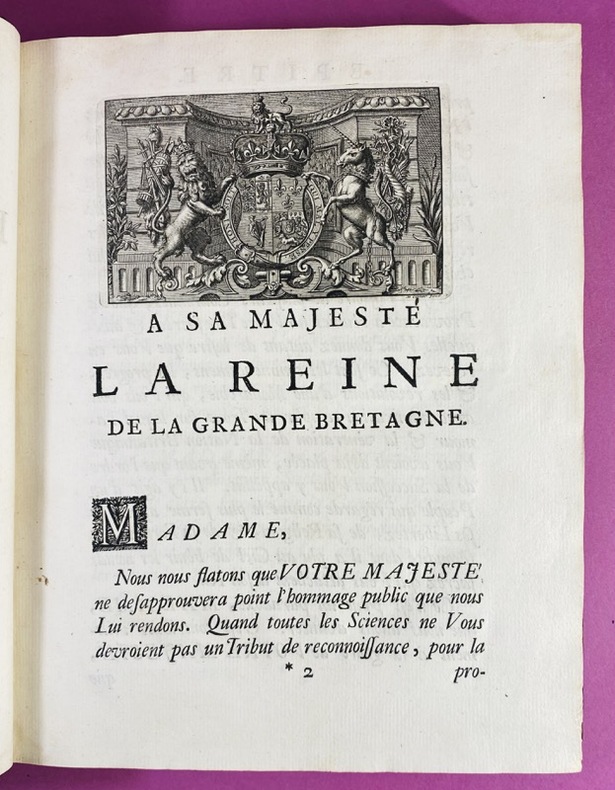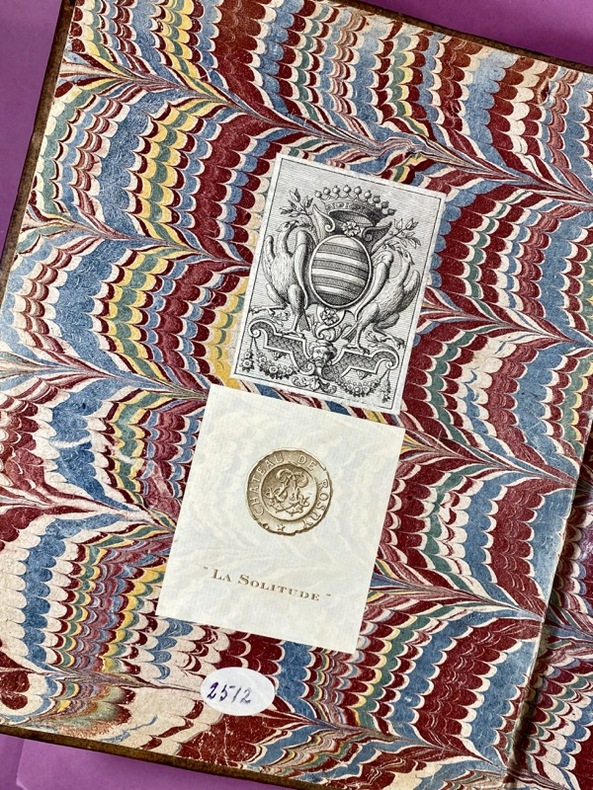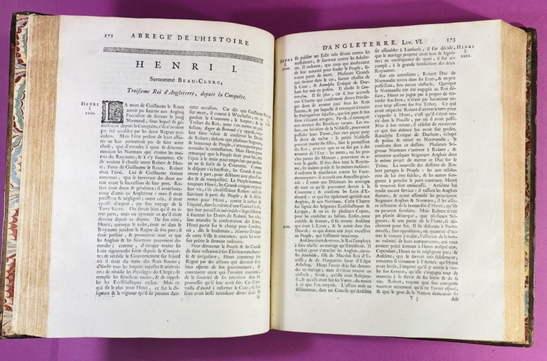 Couverture rigide A la Haye, chez C. de Rogissart & Soeurs, Pierre de Hondt, 1730. Un volume in-4 (26 x 21 cm), tome I seul, reliure pleine basane aux armes de Louis René de Denonville de Brisay (aux deux plats), dos à 5 nerfs orné de fleurons dorés, filet à froid d'encadrement sur les plats, roulette dorée sur les coupes, quelques épidermures, charnières et plats frottés, coins émoussés. Feuillet de titre avec vignette gravée, 3 feuillets non chiffrés d'épitre et de table, 470 pages, bandeau gravé, culs de lampe, manquent les 3 cartes dépliantes, petite mouillure claire marginale sur quelques feuillets (sans atteindre le texte). Deux ex-libris contrecollés au 1er contreplat. Louis René de Denonville de Brisay est probablement un descendant direct de Jacques-René de Brisay, marquis de Denonville (1637-1710), qui fut Gouverneur général de la Nouvelle-France (Canada) de 1685 à 1689. Paul de Rapin Thoyras était un huguenot français exilé après la révocation de l'Édit de Nantes. Il a suivi Guillaume d'Orange en Angleterre et il est devenu l'un des premiers historiens "étrangers" à s'immerger totalement dans les archives britanniques. Son oeuvre monumentale (L'Histoire d'Angleterre en 13 volumes) a dominé le marché européen. L'Abrégé de 1730 répondait à une demande du public pour une version plus accessible, moins coûteuse et plus facile à consulter que l'édition originale massive. Très bon état intérieur, exemplaire singulier du fait de sa provenance.
