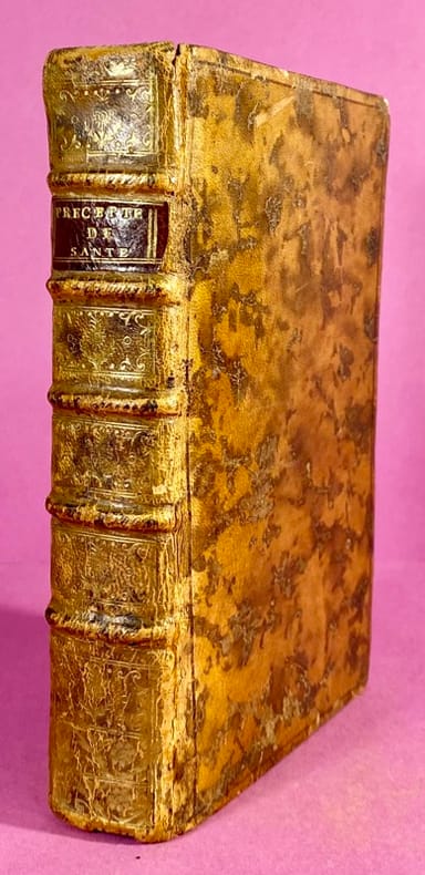 Couverture rigide Paris, VINCENT, Imprimeur-Libraire, 1772. Un volume in-12, (14,5 cm x 8,5 cm), reliure pleine basane marbrée de l'époque, dos à 5 nerfs orné de fleurons dorés, filet à froid d'encadrement sur les plats, tranches rouges, coins émoussés, quelques frottements et épidermures. XL, 600 pages, quelques rousseurs. Jourdain, médecin reconnu du XVIIIe siècle, développe une approche préventive de la médecine, en insistant sur l'importance du "régime" (l'hygiène de vie) et l'exercice physique pour maintenir l'équilibre des tempéraments. En 1772, la médecine s'éloigne des superstitions pour se concentrer sur l'observation et l'hygiénisme. Jourdain est une figure de cette transition. Bon exemplaire, en assez bon état, de cette édition originale.