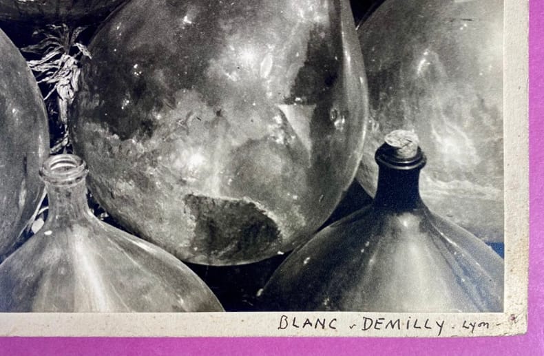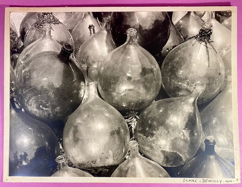 1935 Souple Tirage d'exposition monté sur carton, épreuve argentique d'époque circa 1935. Dilmension du montage : 31 x 41 cm. Signature manuscrite en lettres capitales en bas à droite sur le montage : "BLANC - DEMILLY - Lyon". Numérotation manuscrite "93" au dos, témoignant de son historique d'accrochage en studio ou en galerie. Marques de punaises aux angles du carton, patine du temps sur le support. Composition du célèbre duo lyonnais BLANC et DEMILLY, représentative de la "Nouvelle Vision" photographique des années 1930. Tirage original en bon état.