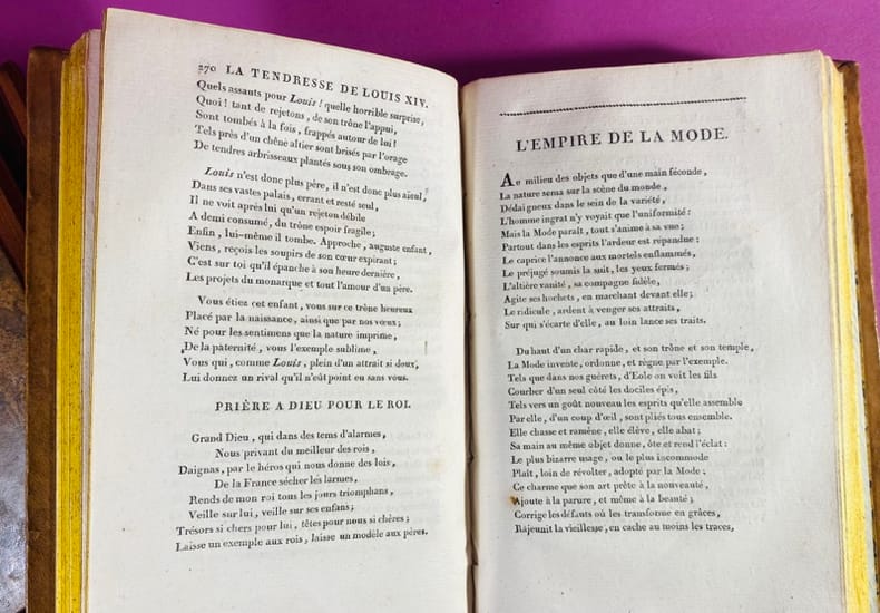 3 tomes reliés plein cuir - dos lisse - cloisonnés et fleuronnés - pièce de titre rouge et tomaison noir - 13x20 - CLXXIV pp de noticeet 185 pp, 467et 374 pp - 1810 - éditions " chez MAUGERET fils, imprimeur et éditeur, rue S.-Jacques, n°38, Paris.