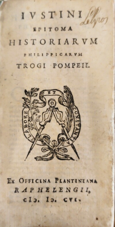 Sans lieu,Ex officina Plantiniana Raphelengii 1606.reliure plein vélin rigide à rabats,in-16,262 pp. Relié à la suite chez le même éditeur la même année,le texte consacré à Alexandre Le Grand de Quinte-Curce,287 pp.,H04-2