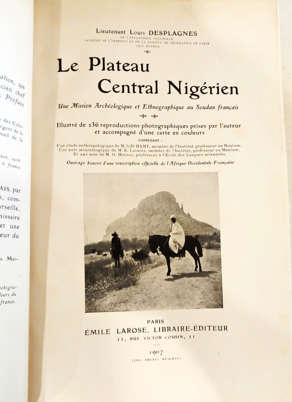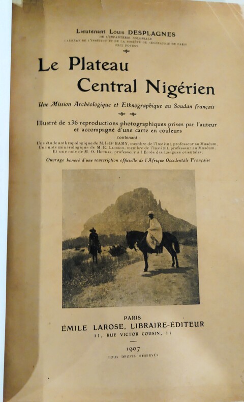 Le plateau central nigérien. Une mission archéologique et ethnographique au Soudan français. (Paris: Emile Larose, 1907). [M.C.: Afrique noire, Mali, ethnologie, archéologie]
