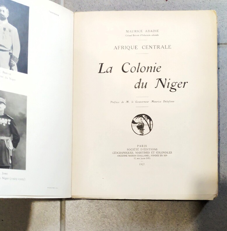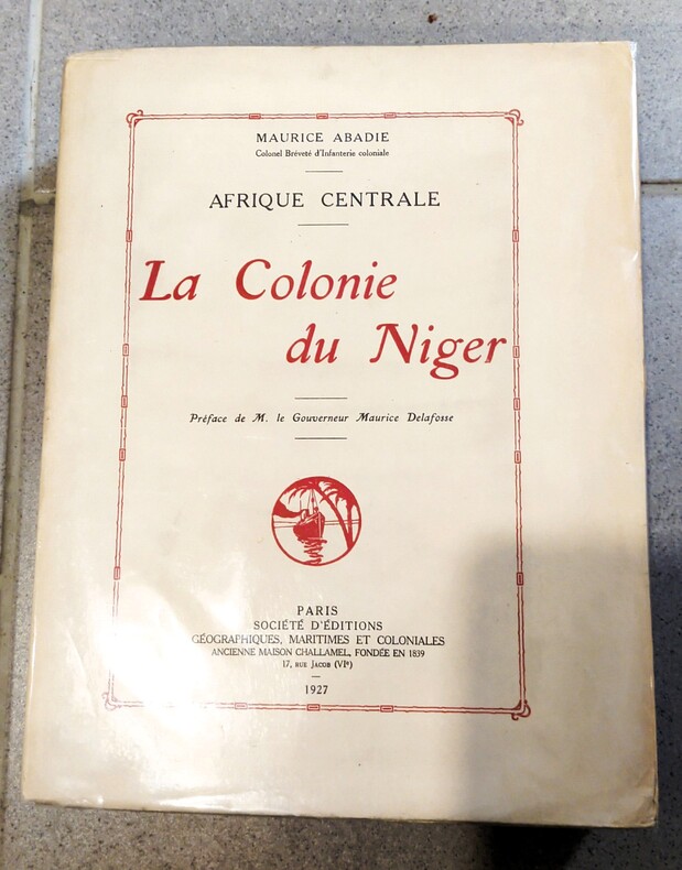 Paris,Société d'éditions géographiques maritimes et coloniales, 1927.Broché, in-4 466 pp., carte de la colonie du Niger in fine, 47 planches pleines pages,ouvrage non entièrement coupé, un envoi de l'auteur à la page de faux-titre à Monsieur Gaston Sorbit.Dos bruni.G08.