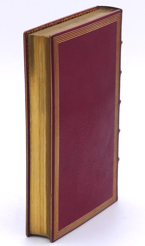 Paris, Michel Lévy frères, 1863. In-8 (227 x 147 mm), 2 ff. n. ch., 474 pp., 1 f. n. ch. Maroquin rouge, quintuple filet doré d'encadrement sur les plats, dos à nerfs richement orné, auteur, titre, lieu et date dorés, double filet doré sur les coupes, large dentelle dorée sur les chasses, tranches dorées, frottements à un mors sur 5 cm (Champs).
