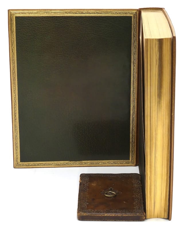 Très bel ouvrage orné de quarante-neuf planches imprimées en taille-douce. L'illustration comprend un frontispice tiré en couleurs, reproduisant en fac-similé un portrait inédit de Catherine de Médicis par Clouet, quarante planches hors texte en photogravure, dont diverses en plusieurs tons, et huit en-têtes et culs-de-lampe. Il fut tiré à 1000 exemplaires sur papier de Rives et 200 sur papier du Japon. Celui-ci est un des exemplaires sur Japon, renfermant une suite des quarante-neuf planches imprimées en camaïeu divers. Il a été relié avec les feuillets de souscription. Ils comprennent un portrait en couleurs de Catherine de Médicis et une reproduction du fac-similé de la reliure exécutée pour elle par Jean de Tournes. Magnifique exemplaire en reliure mosaïquée et doublée de Weckesser et de Samblanx.