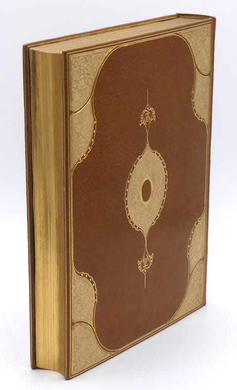 Paris, Boussod, Manzi, Joyant & Cie, 1899. In-4 (312 x 246 mm), 2 ff. n. ch., 181 pp., 1 f. n. ch. Maroquin fauve, médaillon central mosaïqué en veau beige et recouvert d'un décor d'arabesques et de pointillés dorés, nom de Catherine de Médicis au centre au premier plat, encadrement de filets dorés d'encadrement et grandes parties décorées en coin mosaïquées en veau recouvert du même décor doré au pointillé et arabesques, dos lisse orné de même, double filet sur les coupes, tranches dorées, doublure de maroquin vert, jeu de roulettes dorées en encadrement, doublure de tabis marron foncé (de Samblanx & J. Weckesser).