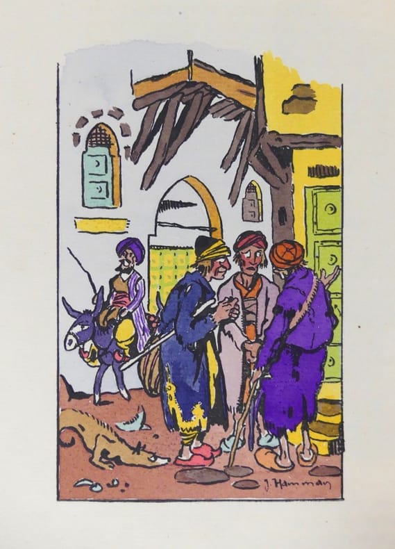 Paris, Editions René Kieffer, Relieur d'Art, 18 rue Séguier, VIe, 1920, 1 volume in-8 de 255x168x18 mm environ, 135 pages, demi-maroquin à coin havane, dos à 4 nerfs portant titres dorés, orné de caissons à motifs mosaïqués à l'oriental, gardes marbrées, tranche de tête dorée, couvertures et dos conservés. Exemplaire N° 491, un des 500 exemplaires sur Vélin de cuves, illustrés de compositions dans le texte en couleurs de Joë Hamman. Tranches légèrement brunies, infimes frottements sur les coupes, sinon bon état, dans une belle reliure.